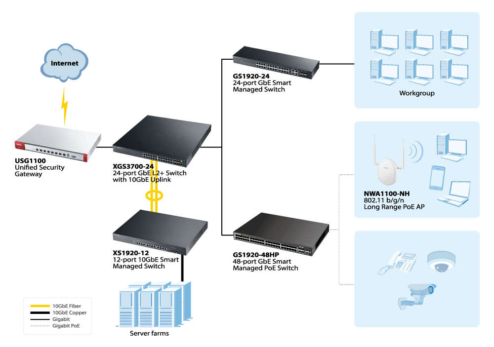 • Upgrade to a 10GbE network by purchasing only one switch